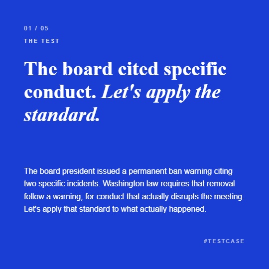 None of these constitute disruption under any reasonable or legal standard. A board that cannot distinguish between disagreement and disruption is not applying the law.